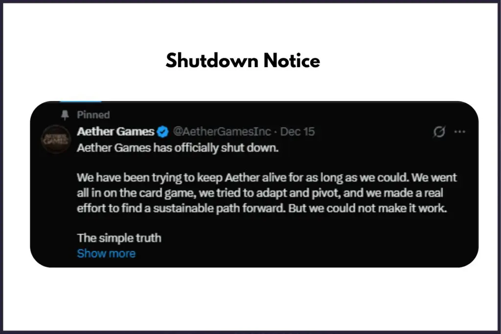 In the volatile world of Web3 gaming, where blockchain ambition collides with traditional game design, few stories capture the promise and the pain as clearly as Aether Games. On December 15, 2025, the studio behind Cards of Eternity, a blockchain-based trading card game set in The Wheel of Time universe, announced it was shutting down permanently.