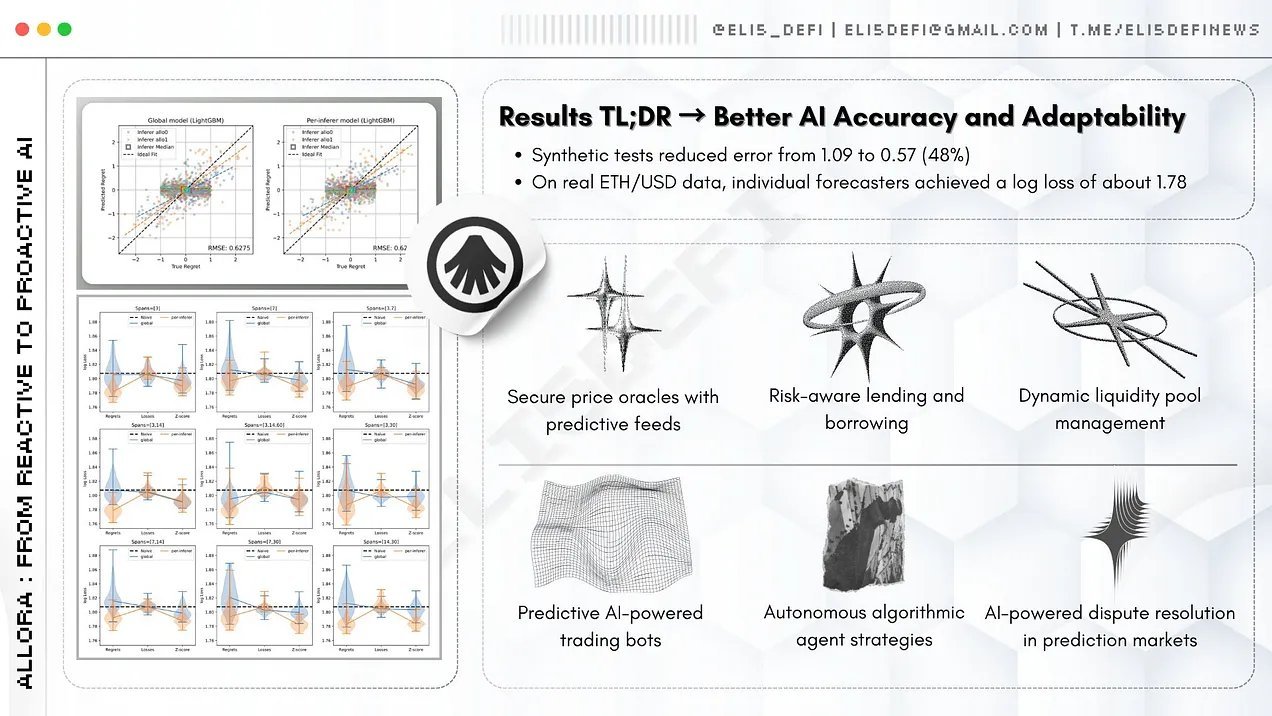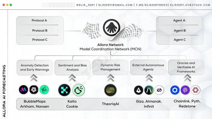 Allora uses forecasting workers powered by ML models (like XGBoost) to estimate indicators such as log loss, regrets, and regret Z-scores. These systems analyze gradients, volatility patterns, price-volume signals, autocorrelations, and Bollinger Bands.