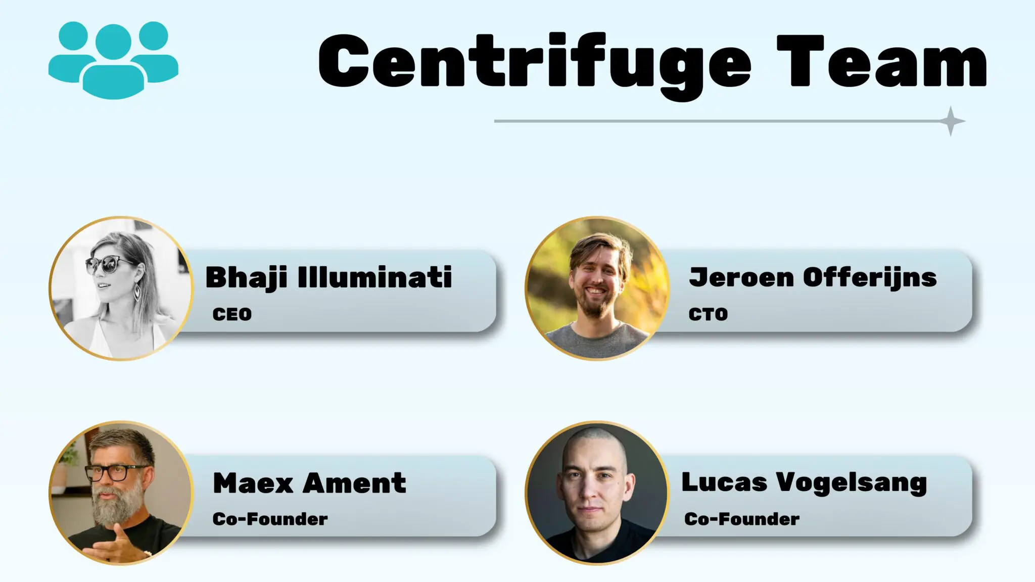 Centrifuge was founded by Lucas Vogelsang and Martin Quensel, who bring extensive experience in blockchain infrastructure, financial technology, and enterprise software. The broader team includes engineers, researchers, and financial specialists focused on bridging traditional finance with decentralized systems.