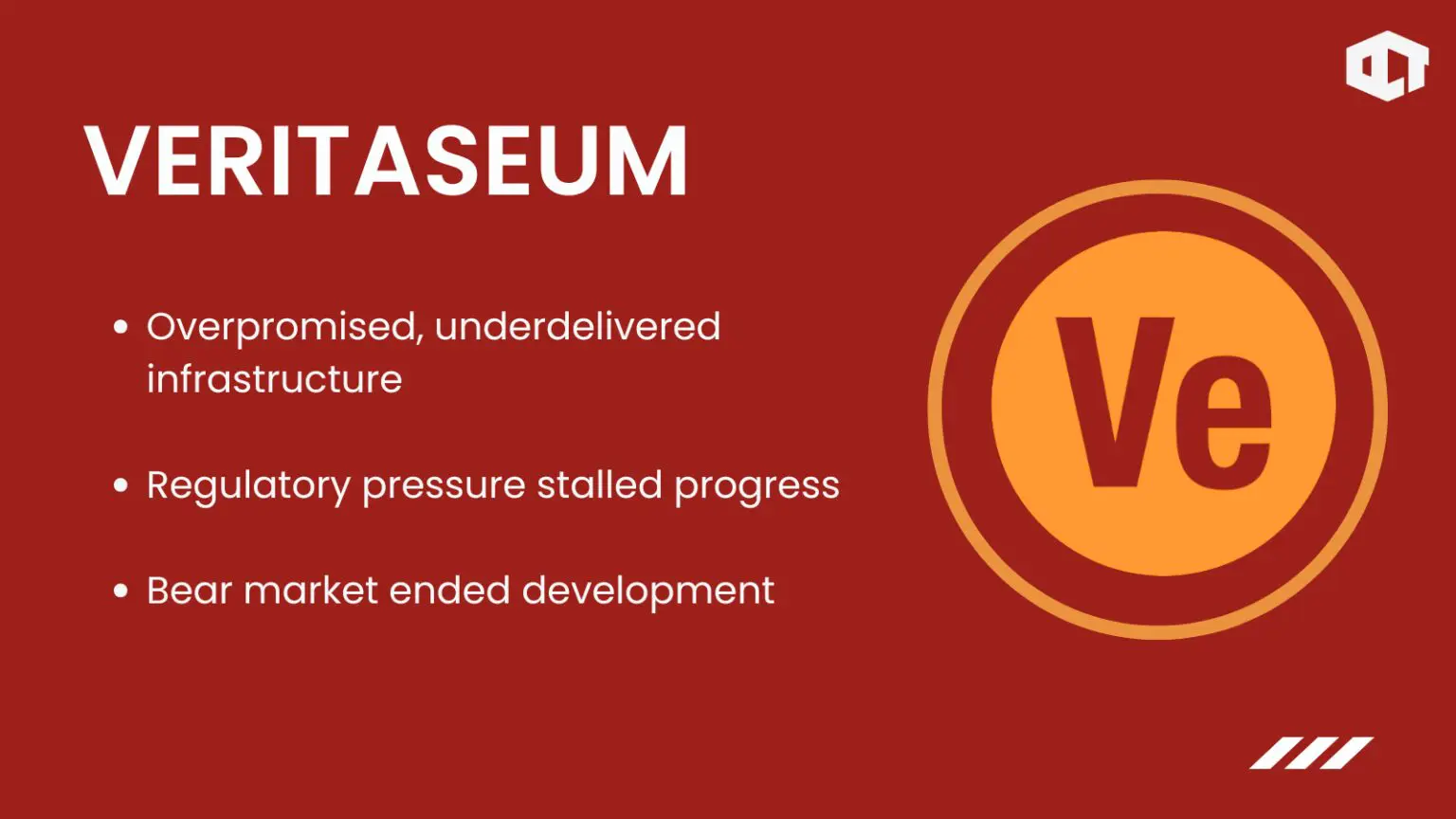 Veritaseum emerged during the 2017 ICO boom, promising a decentralized capital markets platform. The project raised significant funds but struggled to deliver working infrastructure. Regulatory scrutiny, legal disputes, and alleged security incidents followed. As the bear market deepened, development slowed and communication declined.