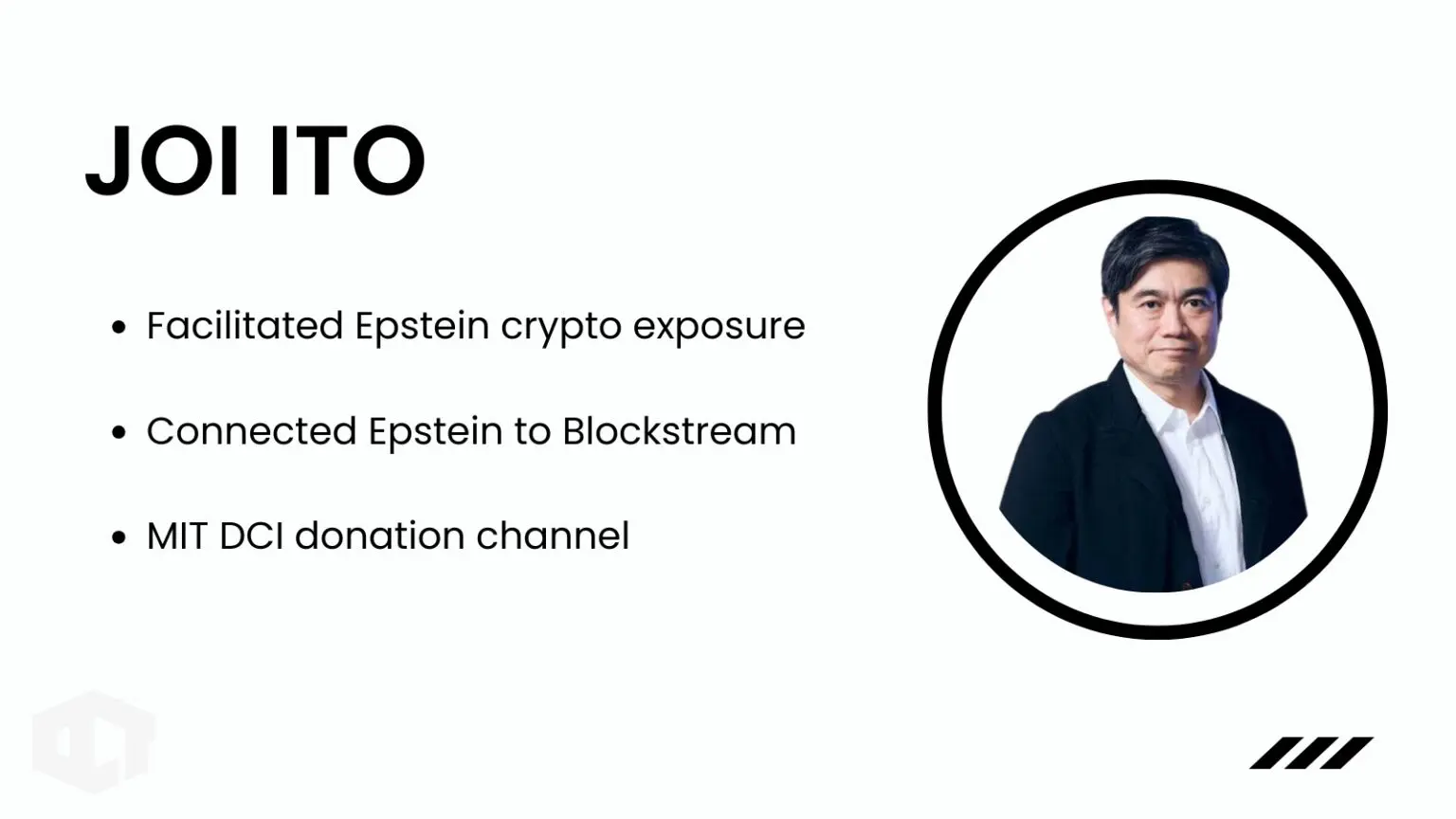 Ito appears as a facilitator for Epstein’ crypto exposure. He helped connect Epstein to Blockstream investment structures and supported MIT’s Digital Currency Initiative (DCI). The files mention Epstein-linked donations of roughly $750k–$850k to MIT, partly connected to Bitcoin developer funding gaps in 2014.