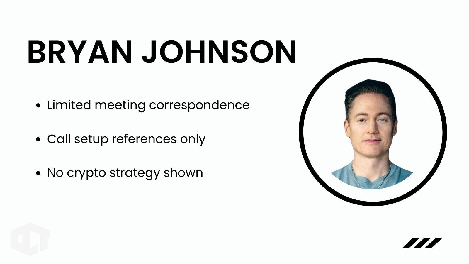 Bryan Johnson is a tech entrepreneur who sold Braintree to PayPal and later launched projects like Kernel, along with his well-known longevity-focused initiatives. He does not play a central role in crypto, but he sits in the same high-net-worth tech founder ecosystem.