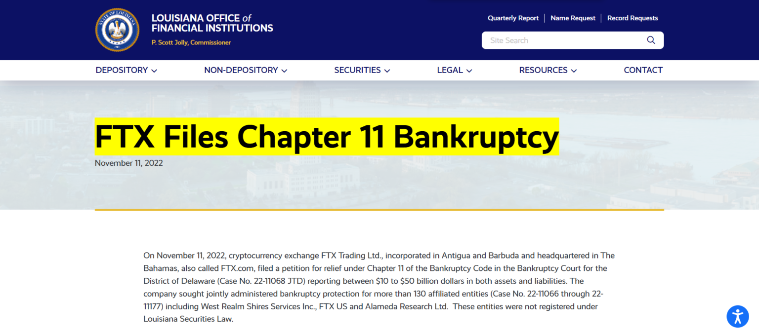 On November 11, 2022, FTX filed for Chapter 11 bankruptcy.