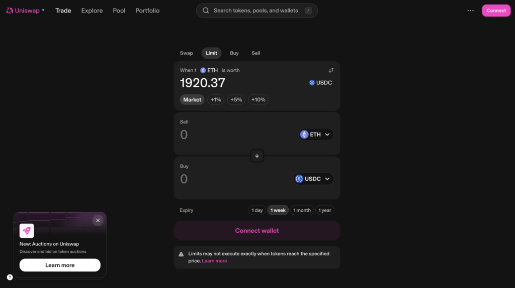 Limit orders let you control the exact sell price. Market orders execute instantly but may fill lower during volatility.