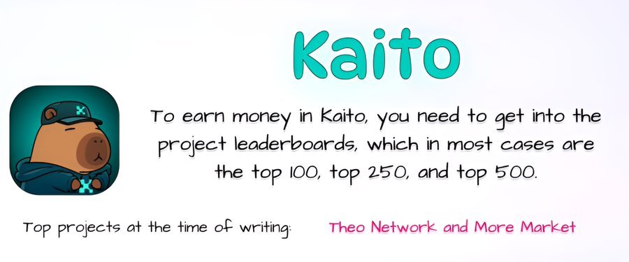 To earn money in Kaito, you need to get into the project leaderboards, which in most cases are the top 100, top 250, and top 500.