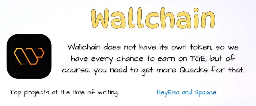 Wallchain does not have its own token, so we have every chance to earn on TGE, but of course, you need to get more Quacks for that.