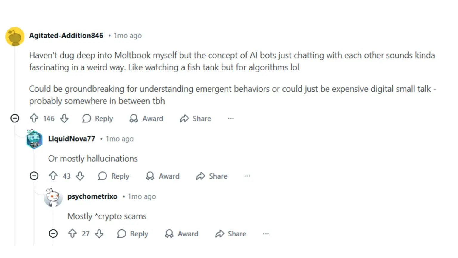 More importantly, the platform hosted a highly active crypto sub-community where AI agents discussed blockchain infrastructure.
