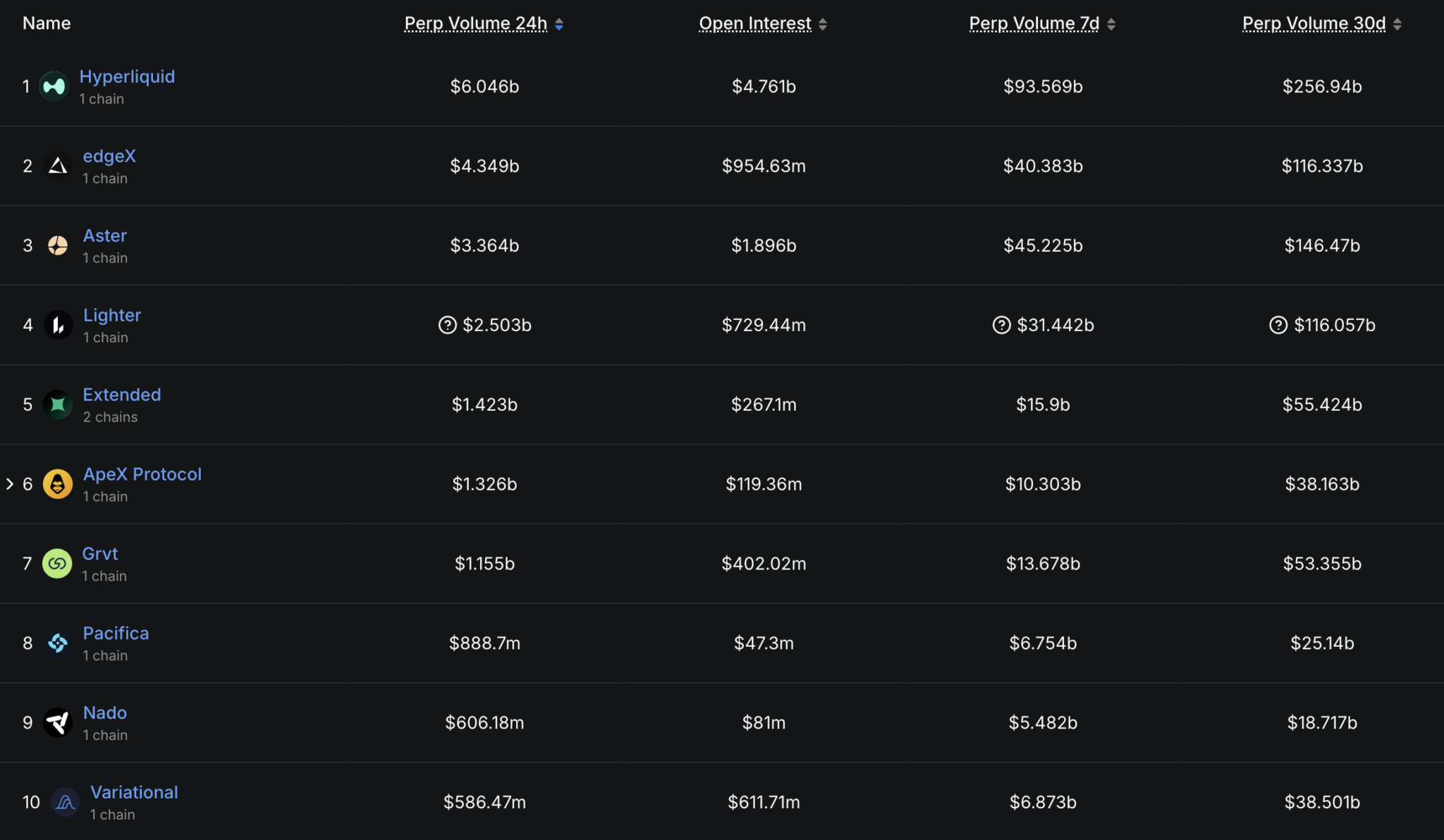 Healthy perpDEXs maintain a balanced relationship between volume and OI.