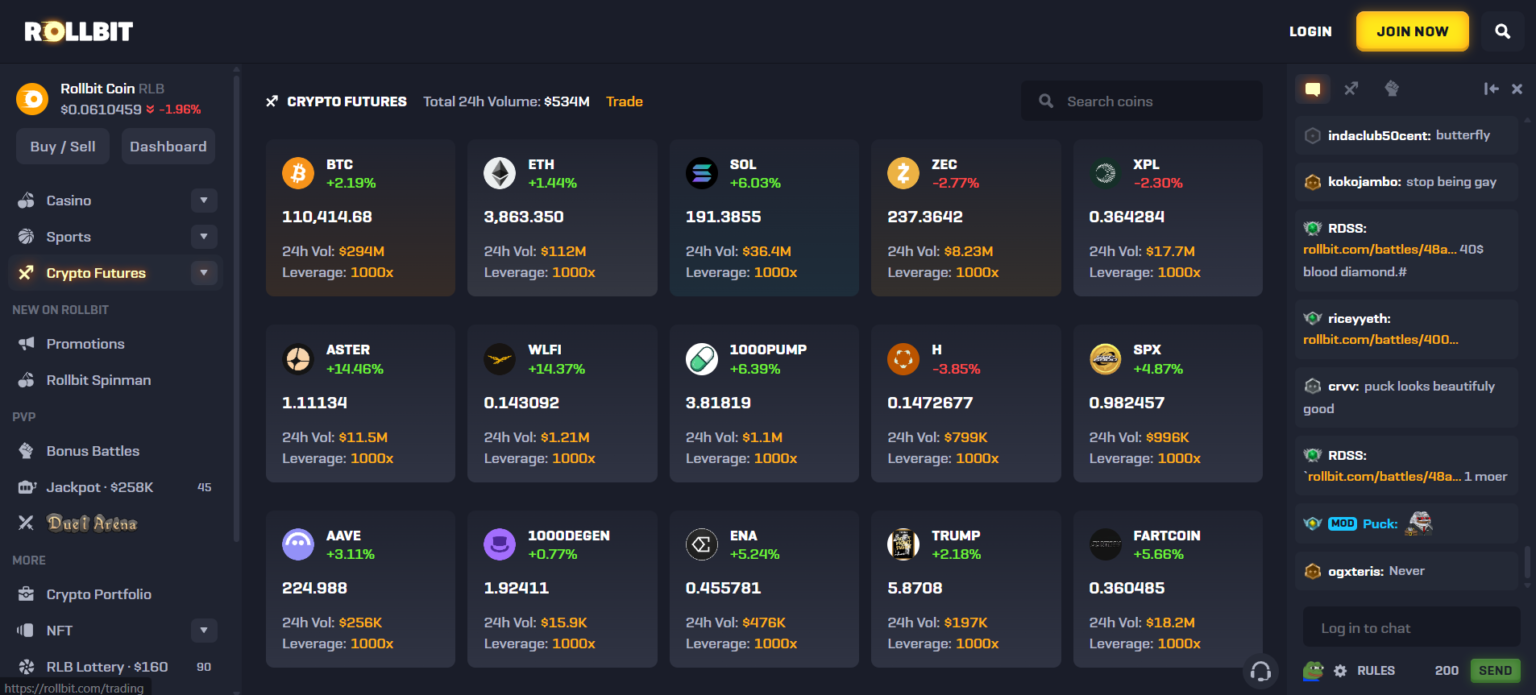 A standout innovation is crypto futures trading with up to 1,000Ă— leverage. Rollbit became the first casino to integrate perpetuals and margin trading within the same interface. Here, 30% of all trading fees fund RLB buybacks. This not only diversifies revenue but also makes Rollbit attractive to traders seeking volatility exposure.