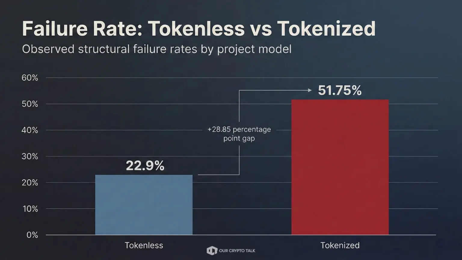 Compare that to similar successful projects that never launched tokens. Their failure rate? Just 22.9 percent.