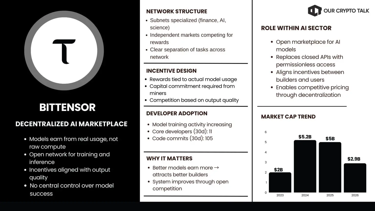 Centralized AI providers are raising prices and restricting access. Bittensor offers the opposite model. Open participation, competitive pricing, and privacy built into the network. Read our full Bittensor review.