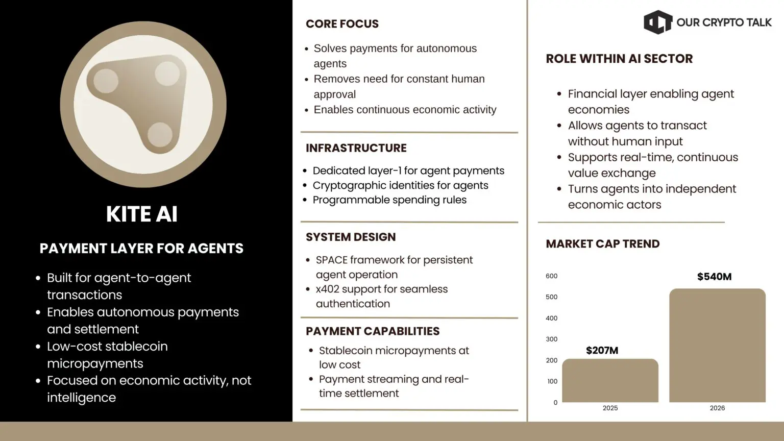 Kite built a layer-1 specifically for that. Agents get cryptographic identities, programmable spending rules, and access to stablecoin micropayments at very low cost.