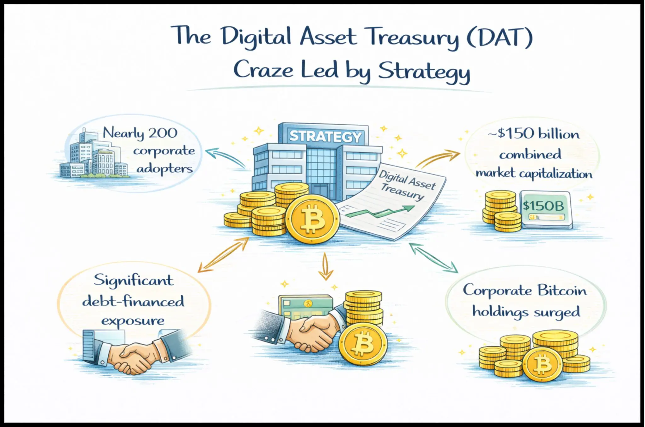 The DAT trend legitimized crypto within corporate finance but introduced leverage and dilution risks. While it provided inflation hedging benefits during Fed rate cuts, it amplified downside volatility during market corrections, including a 15% sector drawdown in Q3.