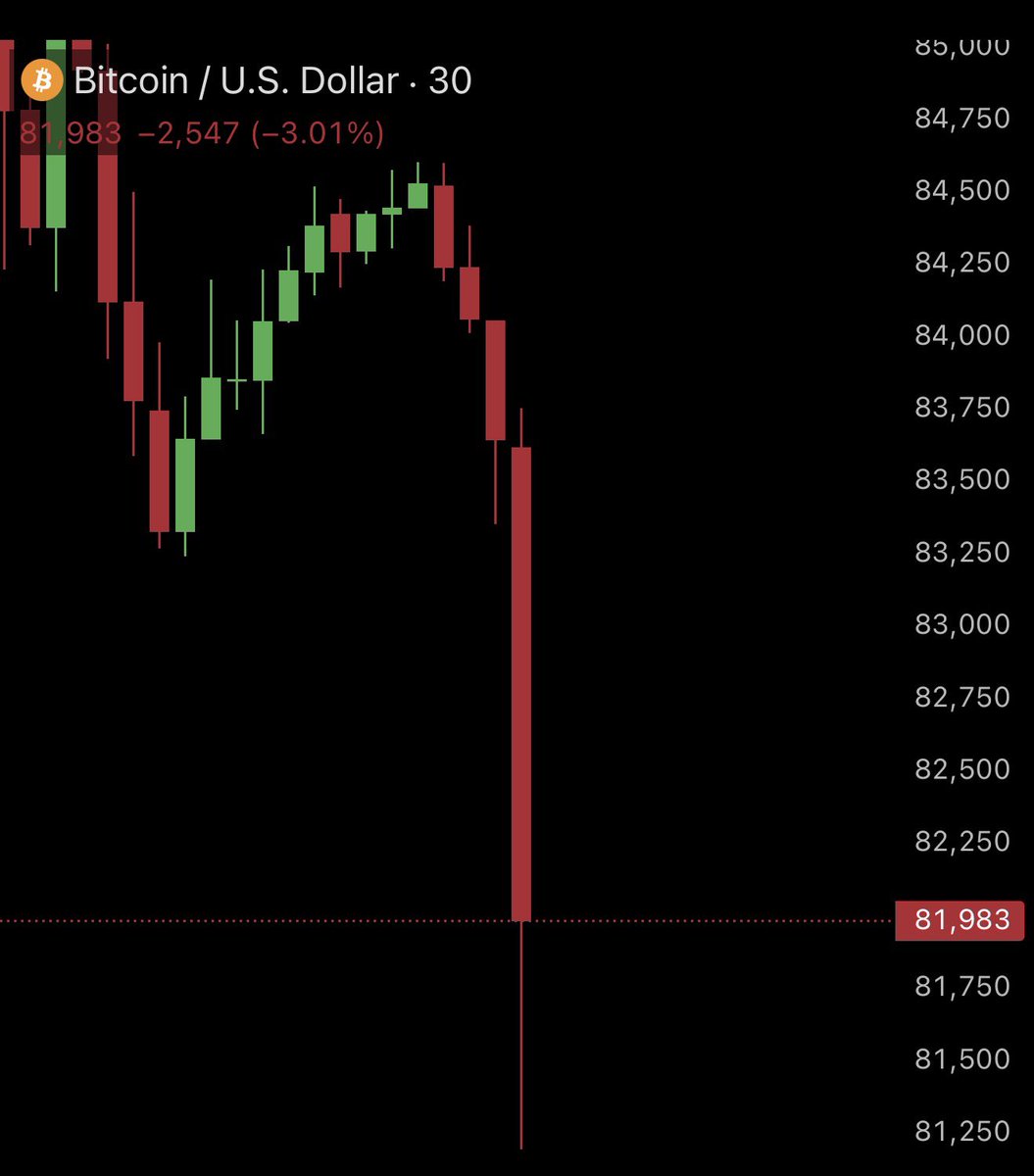 Bitcoin crashes to $81,000 , marking its lowest price of the year and triggering a massive market-wide liquidation.