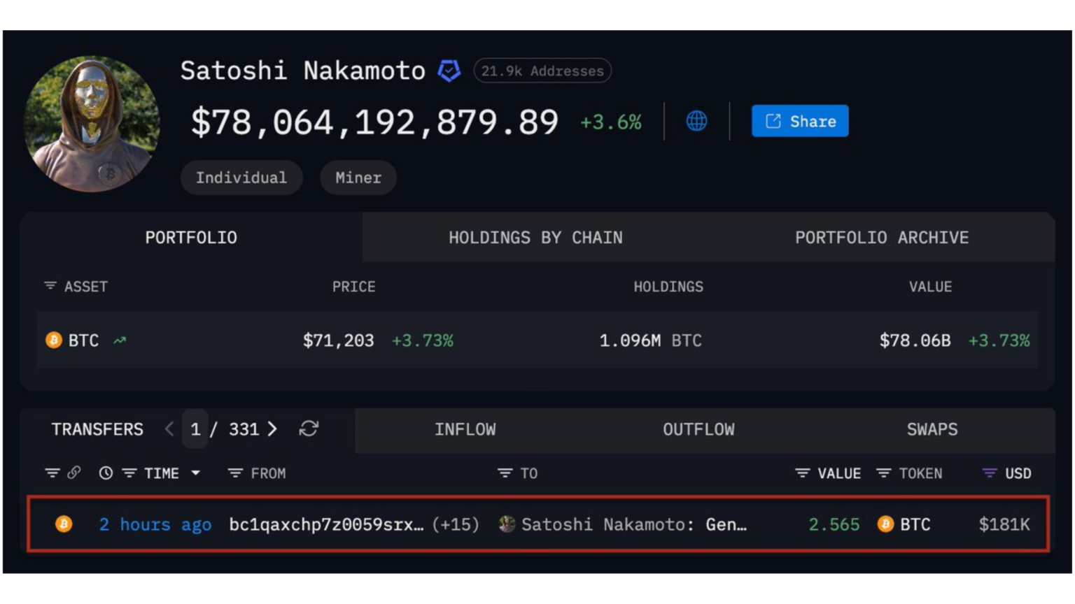 Someone Just Sent $180K in Bitcoin to Satoshi Nakamoto’s Wallet