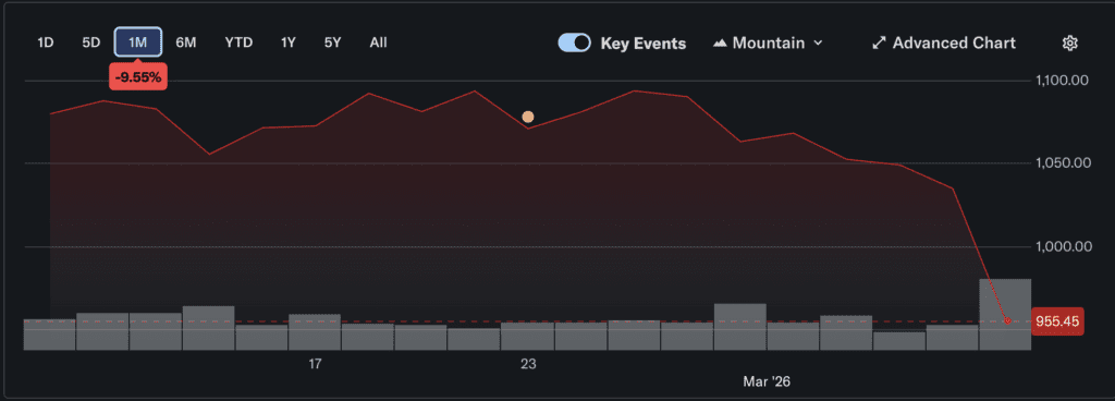 BlackRock shares dropped roughly 5 to 7 percent on March 6 and 7, falling to levels not seen since May 2025 in some reports. Shares of other private credit heavyweights, including Apollo, Ares, and KKR, also declined by about 4 to 6 percent.