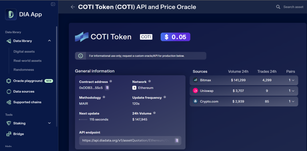 DIA integrates real-time COTI price feeds on Ethereum, boosting DeFi security and expanding COTI’s reach in decentralized markets.