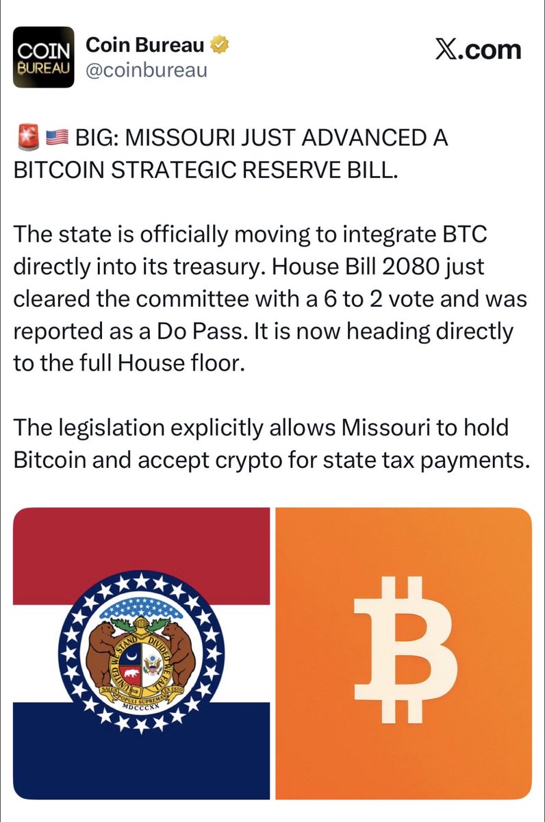 The Bitcoin Strategic Reserve bill advanced in the Missouri House this week. https://t.co/lGJFNMozJN