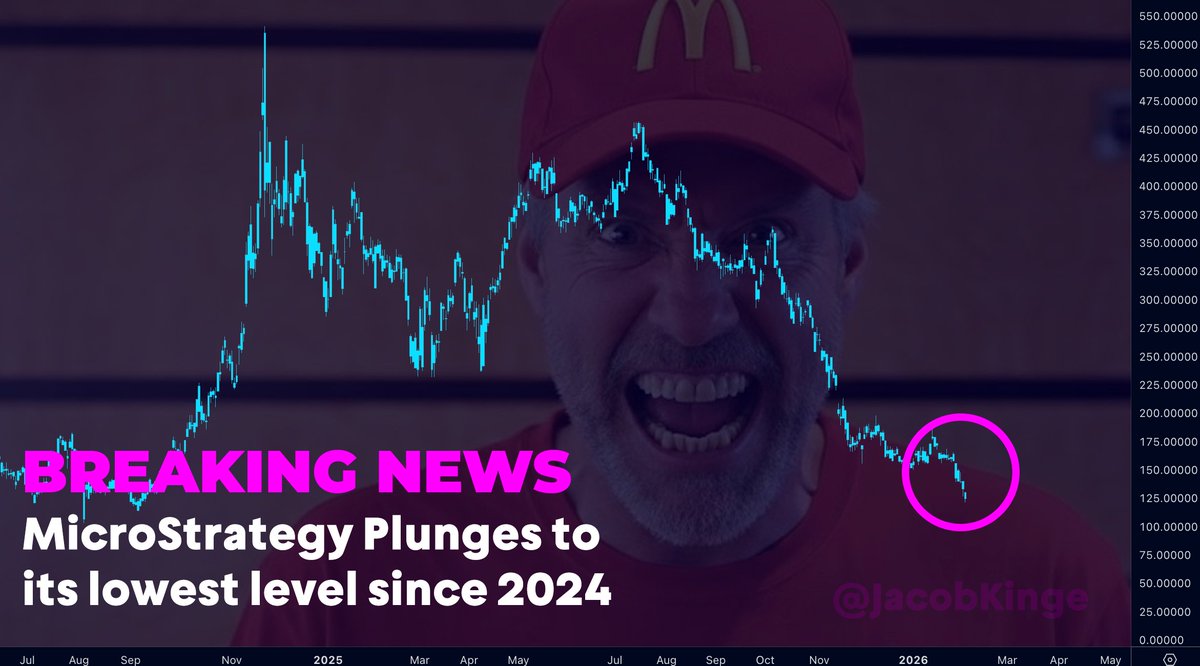 MICROSTRATEGY $MSTR just hit a new low since September 2024 Shares down -78% from the November 2024 all-time high Their Bitcoin position is now close to an unrealized loss of -3 billion dollars, the company that once was the the safest way to buy Bitcoin. Right now looks like https://t.co/8mUtlhRF8a