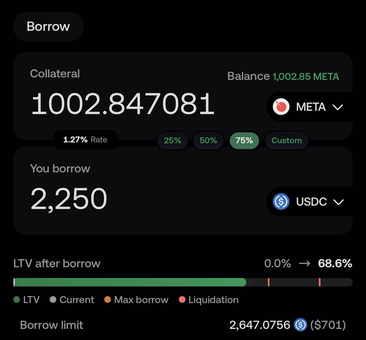 Well, @solana should be proud of this launch You can borrow against almost any token, even memecoins Including tokens most lending markets would never touch @omnipair built a next-gen lending AMM For example, I can borrow against $META paying only 1.3% Incredible tech https://t.co/TiIYDNygTL