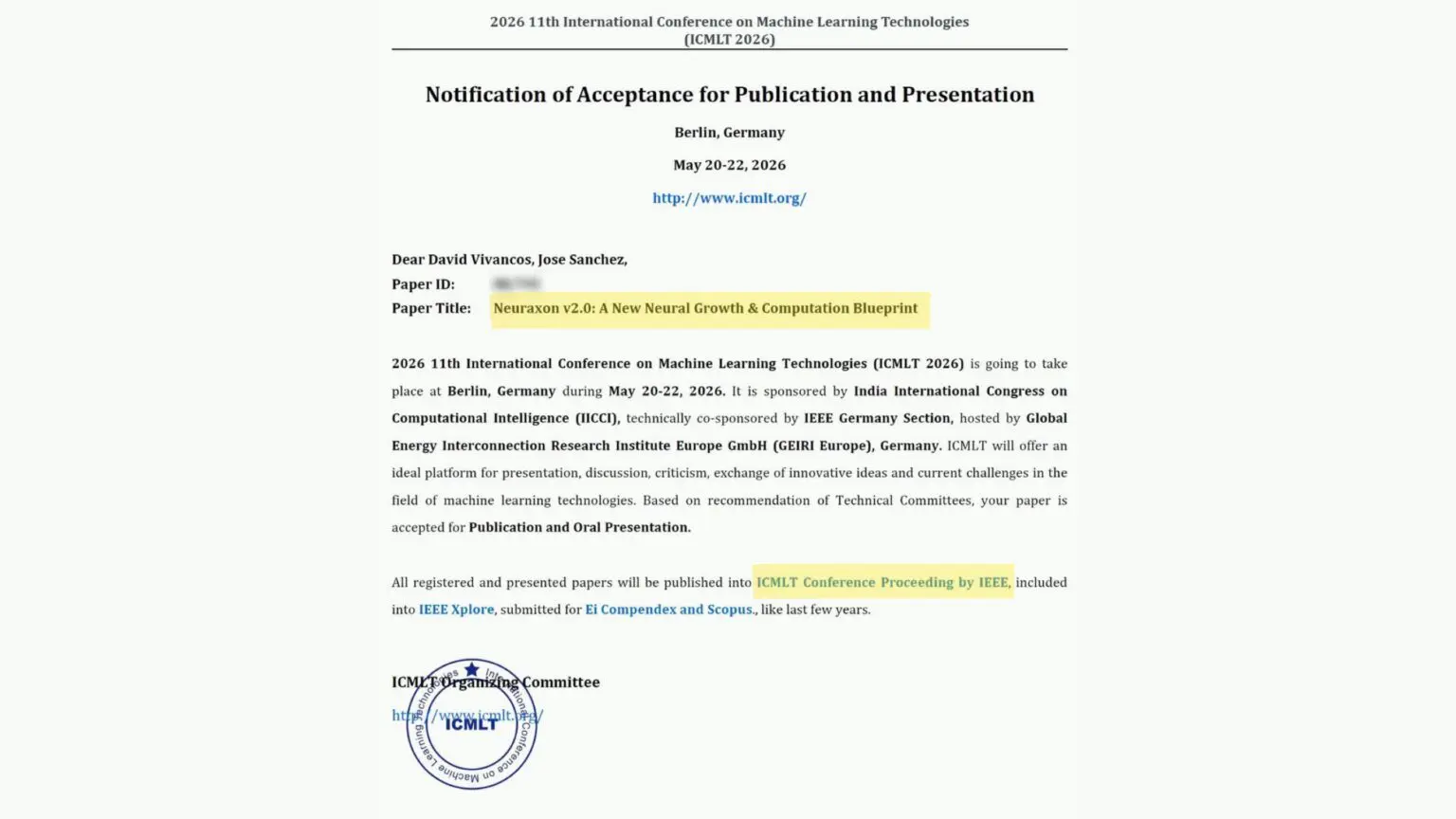 Scientific advisors David Vivancos and Dr. José Sánchez authored the paper, which focuses on neural architectures inspired by biological processes. Scopus, a major academic research database, will index the research.