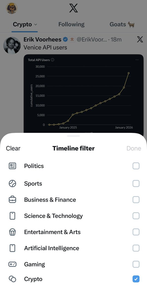 💥JUST IN X LAUNCHES TIMELINE FILTERS WITH EIGHT TOPICS TO CHOOSE FROM CRYPTO IS ONE OF THEM 🚀 https://t.co/txgA7UrCgR